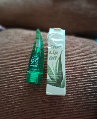 Vzala jsem verzi aloe a jahoda, obě voní dobře a dělají mé rty jemné.