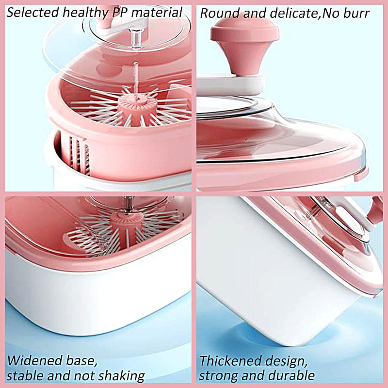 Waschen und abtropfen in wenigen Sekunden, ohne direkten Kontakt mit schmutzigem Wasser oder zusätzliche Utensilien. Ideal für den täglichen Gebrauch.