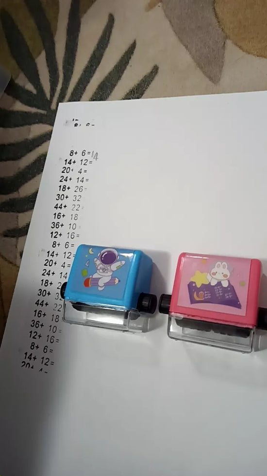 Absolutt. Du trenger bare å rulle stempelet over et ark for å skrive ut en serie oppgaver. Barnet kan deretter løse beregningene direkte på arket.