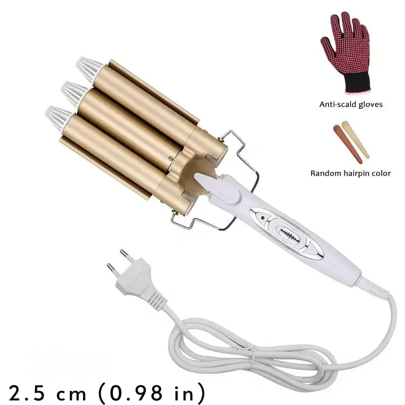 Thanks to its triple barrel, create voluminous and natural waves in record time, without damaging your hair.