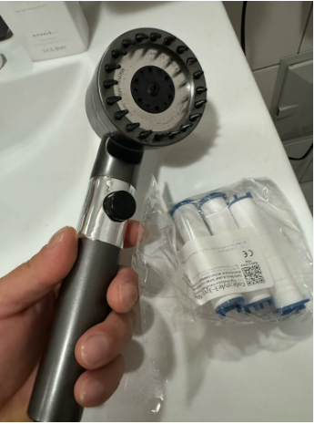 Huvudet innehåller ett mineralsystem för filtrering, som minskar klor, föroreningar och lukter från kranvattnet.